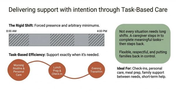 We focus on what support is actually needed, not how long someone must stay on the clock to provide it.